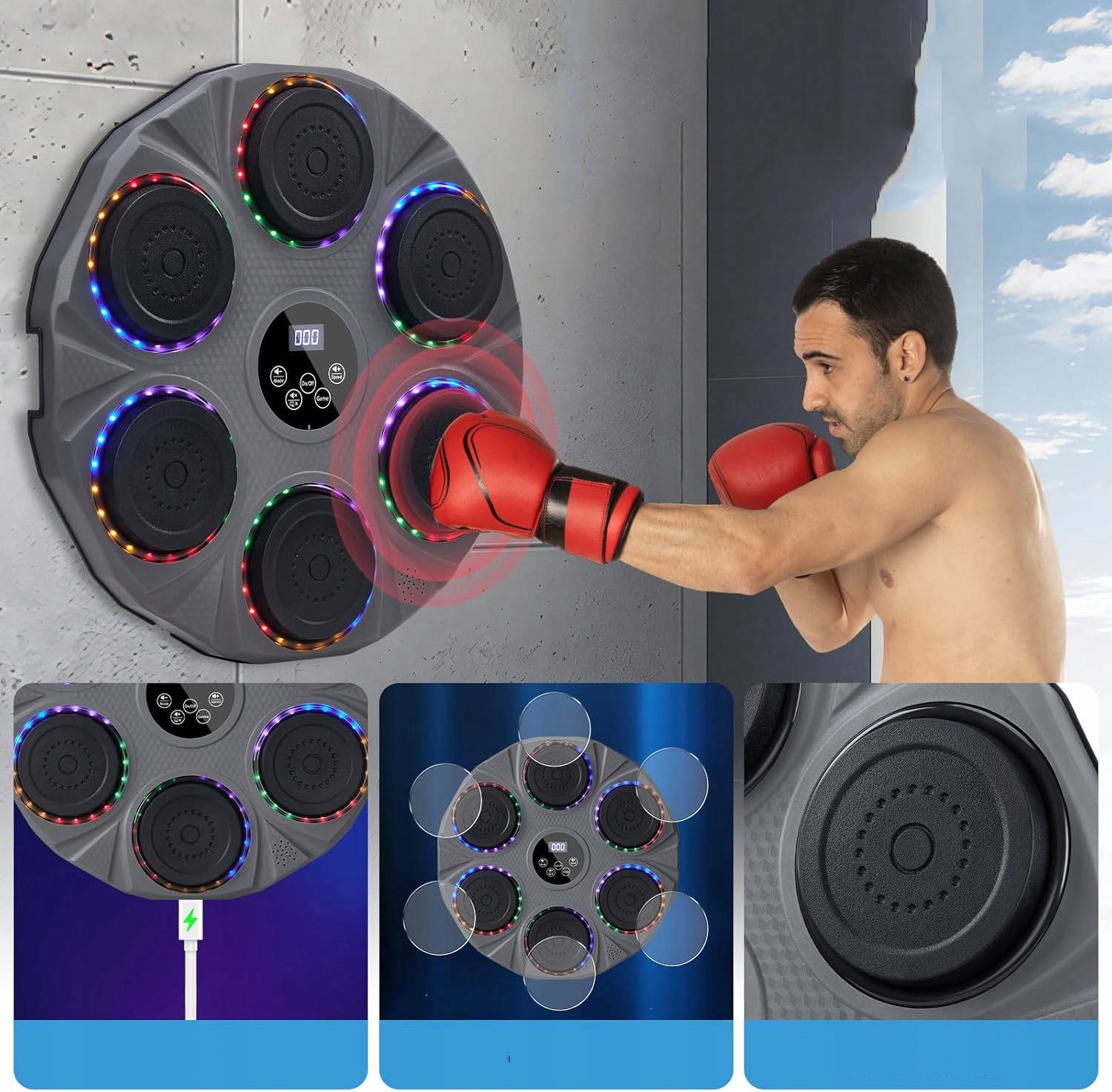 🥊🥊🥊Умный музыкальный боксерский тренажер: Ощутите удобство сенсорного управления интеллектуальным музыкальным боксерским тренажером с регулируемой скоростью света. Вы можете легко регулировать громкость, скорость хода и следить за своим прогрессом благодаря режиму светодиодного дисплея. Этот музыкальный боксерский тренажер оснащен встроенными динамиками объемного звука и цветными огнями, которые синхронизируют попадание в цель с выбранной вами музыкой, чтобы улучшить ваши тренировки.