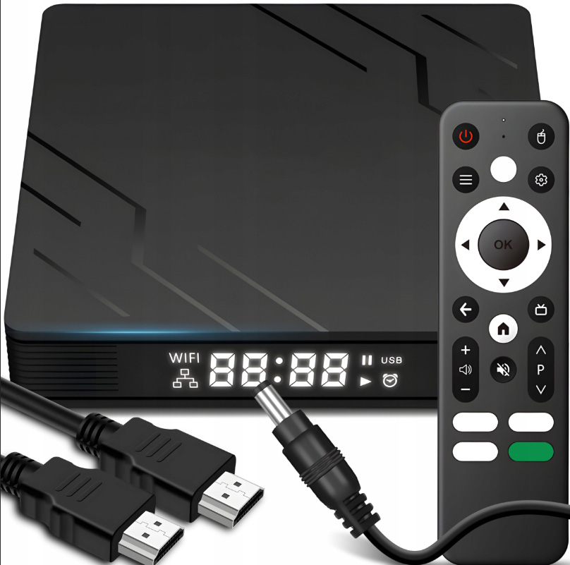 ⭐ Зачем выбрать нашу интеллектуальную коробку DRMZ? B> Android 13 в телевизионной версии - быстрая и стабильная система. Изображение. Приложения одновременно. AirPlay - Передача изображений от смартфона к телевизору. ✅ USB 3.0 - Быстрая передача данных. Польский . набор!