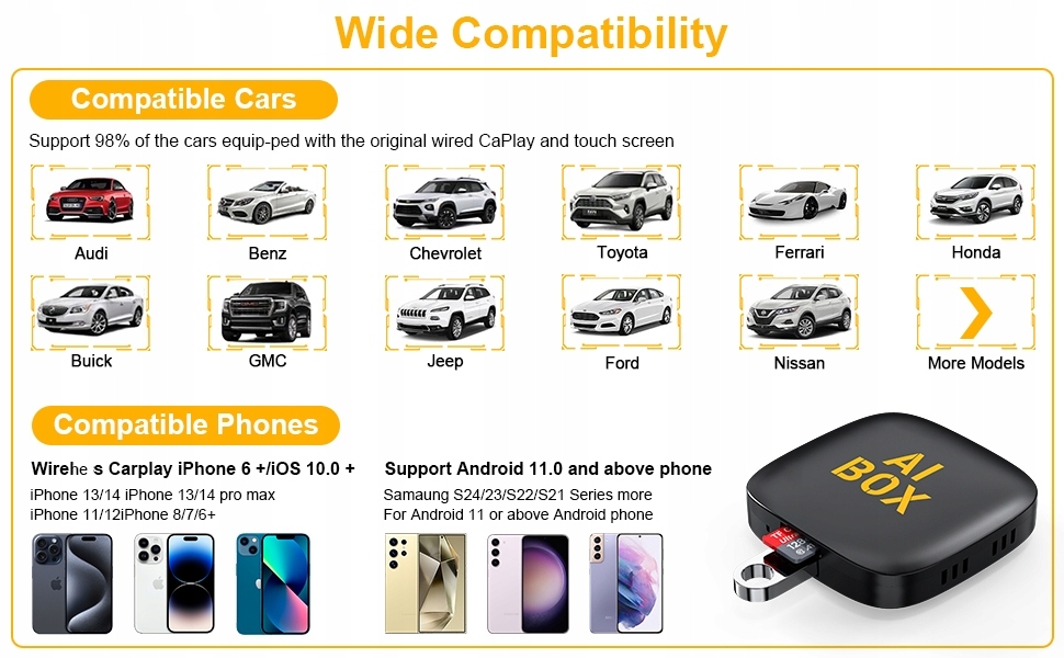 <р>1. Если в вашем автомобиле нет проводного Apple Carplay, наши продукты не поддерживаются, пожалуйста, не покупайте <р>2. Оригинальный автомобиль поддерживает только Wireless Carplay и не поддерживает его. <р>3. Модели до 2016 года также не подходят