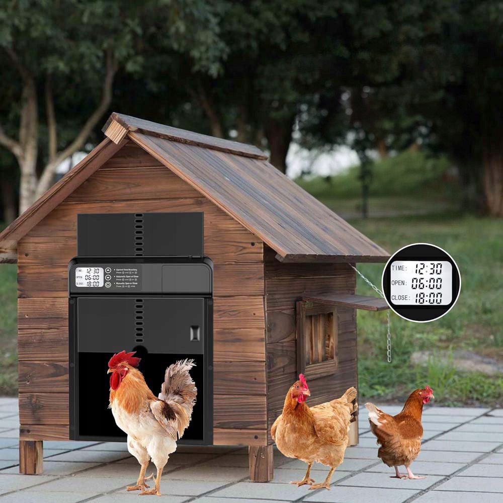 💫ОТКРЫТИЕ ДВЕРИ ДЛЯ КУРИЦ С ТАЙМЕРОМ И РУЧНОЙ РЕГУЛИРОВКОЙ, ЭЛЕКТРИЧЕСКАЯ АВТОМАТИЧЕСКАЯ ЗАСЛОНКА ДЛЯ КУРИЦ С ТАЙМЕРОМ И ЖК-ЭКРАНОМ, ОТКРЫТИЕ ДВЕРИ ДЛЯ КУРИЦЫ, АВТОМАТИЧЕСКАЯ ДВЕРЬ ДЛЯ КУРИЦ, БЕЗОПАСНОЕ ВЫРАЩИВАНИЕ ЦЫПЛЕНКОВ, ЧЕРНЫЙ💫