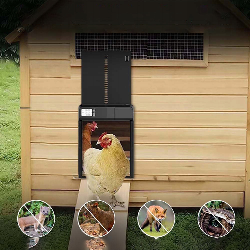 Наши высококачественные автоматические двери курятника, изготовленные из прочного алюминия, устойчивы к коррозии и выдерживают экстремальные погодные условия, обеспечивая при этом безопасность и защиту ваших кур.