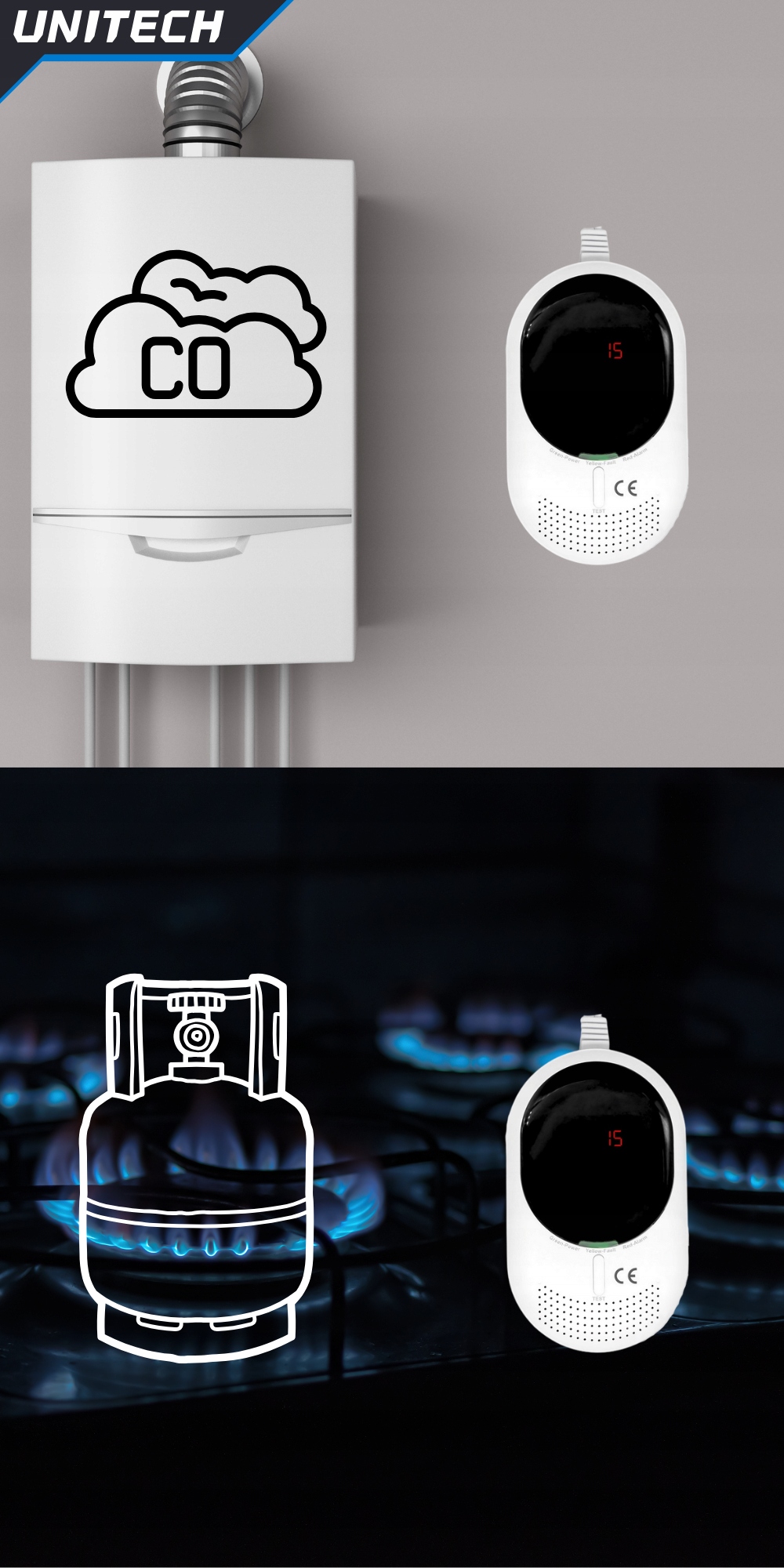 ➡️ Датчик: полупроводниковые/каталитические датчики.; обнаруживать угарный газ и горючие газы (например, сжиженный нефтяной газ (СНГ), природный газ, метан и т. д.)