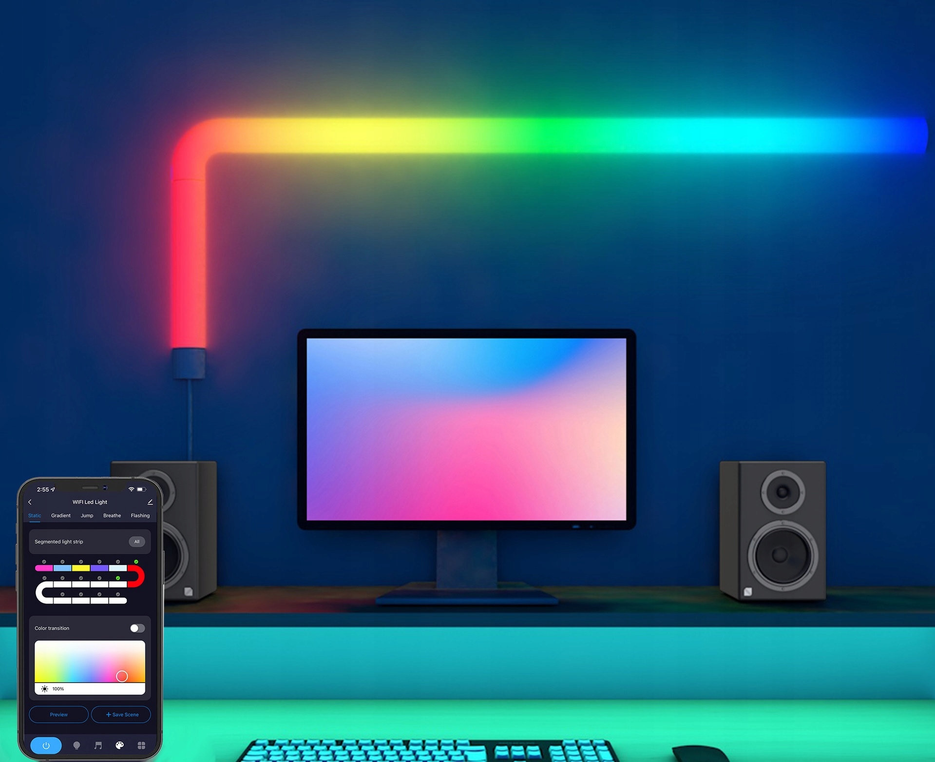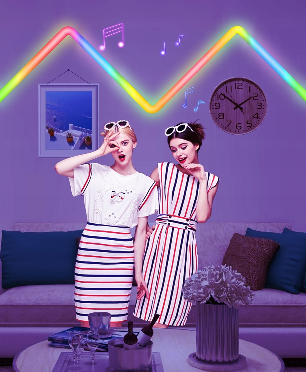 ✅ Светильник имеет эффект радуги, т. е., Светодиодные ленты RGBIC 5050 с модулем ws2811, поэтому можно отображать сразу несколько цветов в одном разделе, как показано на фото ниже.