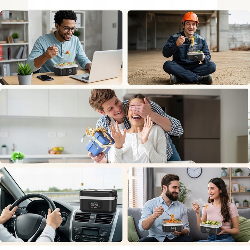 ⚡ Функция «Подогрев и сохранение» (60 Вт) разогреет блюдо за 40–60 минут — без розетки. Идеально подходит для офиса, стройки, путешествий или автомобиля.