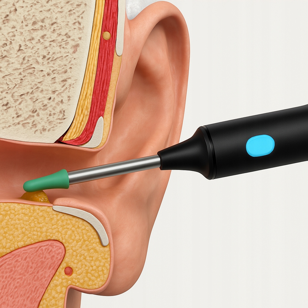 Благодаря наконечникам лезвия, удаление воска и других примесей очень просты. Устройство также можно использовать для проверки состояния рта, кожи головы или носа.