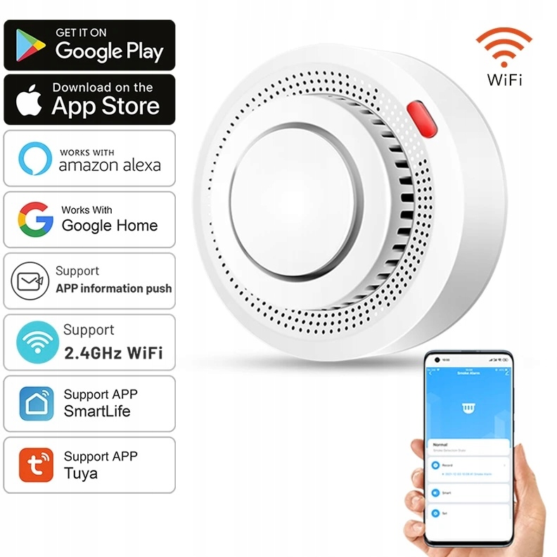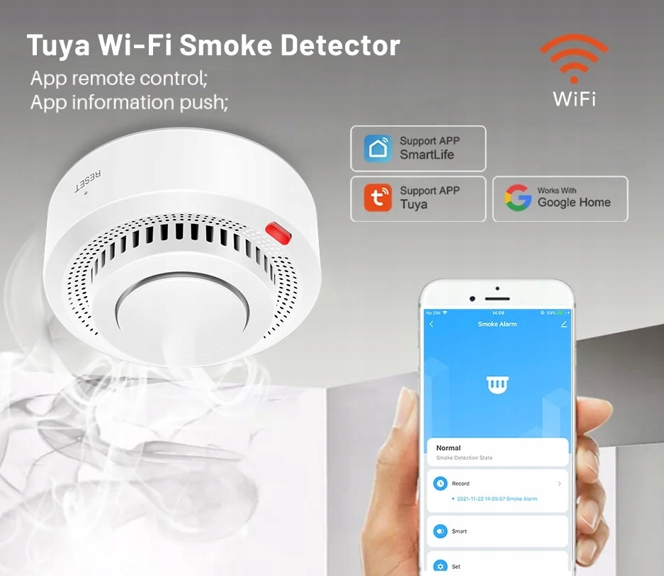 SmartLife Smoke Sensor, Tuya Wi -Fi с 360 ° фотоэлектрическим датчиком - Интеллектуальный дом