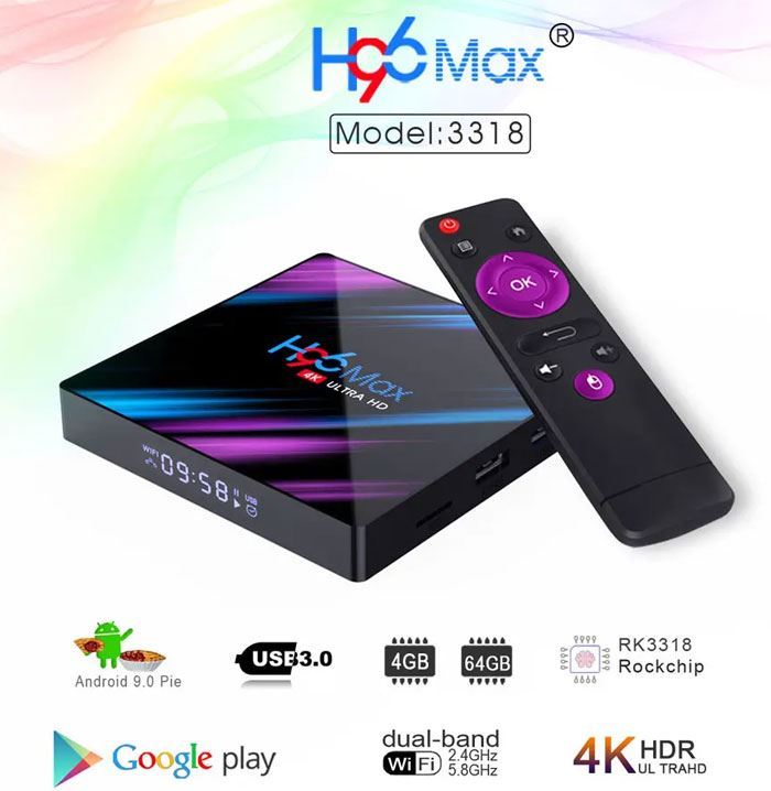 Smart TV Box H96 MAX RK3318, 4 ГБ ОЗУ, 64 ГБ ПЗУ