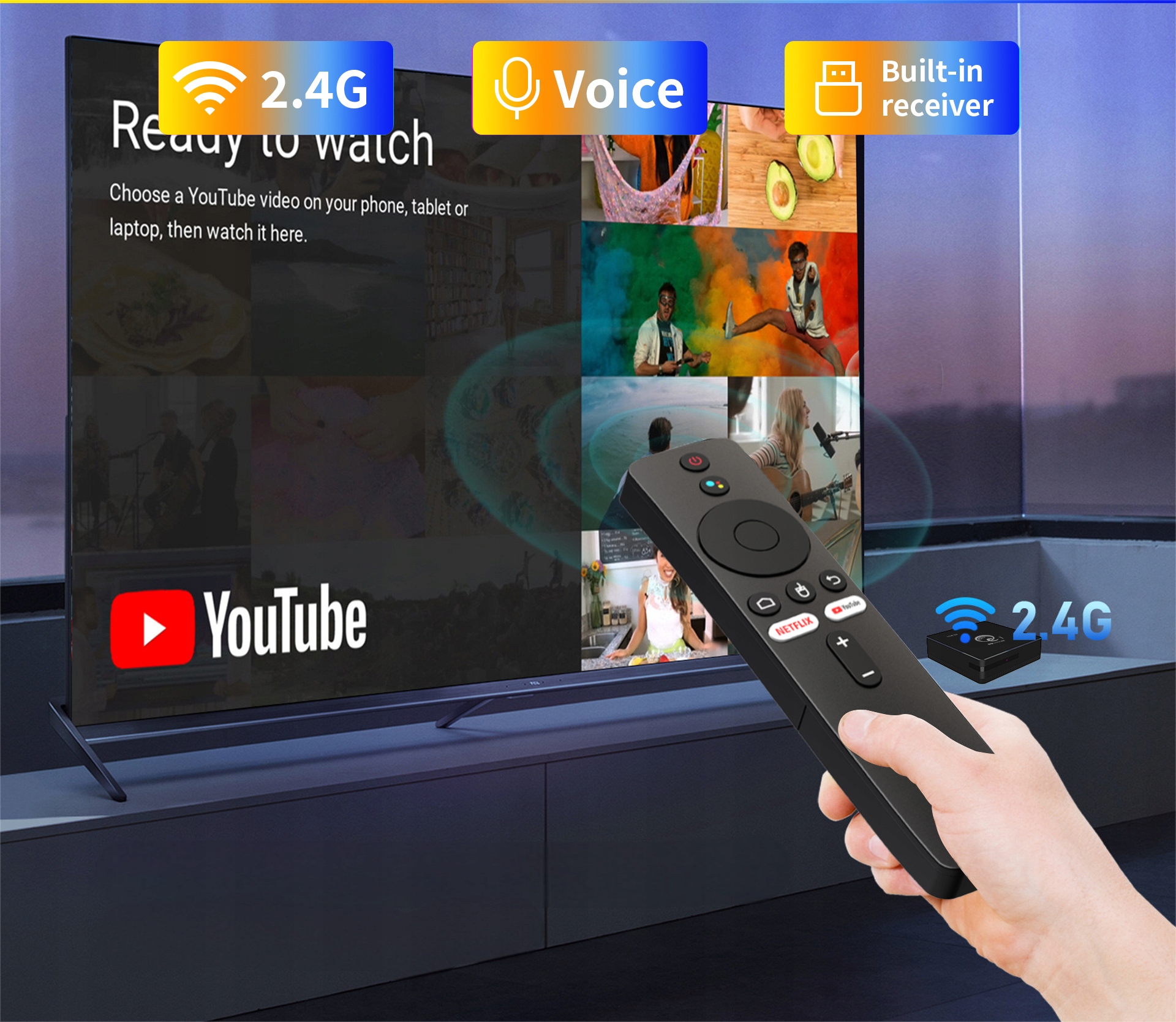 - Если у вас есть старый телевизор, просто подключите нашу телевизионную коробку, чтобы преобразовать его в беспроводной интеллектуальный экран с голосовым пилотом.