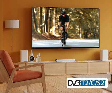 Телевизор полностью адаптирован для приема нового стандарта цифрового телевидения: эфирного DVB-T2, спутникового DVB-S2 и кабель DVB-C