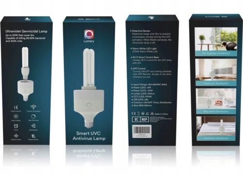 Lumary Disinfection Lampe на основе ультрафиолетовых работ способна устранить более 99,9% бактерий, вирусов, клещей и различных паразиты. По сравнению со многими другими физическими методами стерилизации, ультрафиолеты являются относительно безопасной и эффективной технологией дезинфекции и стерилизации. Идеально подходит для использования в кухнях, гостиных, столовых, офисах, семейных комнатах и спальнях. Возможность временной работы - способность контролировать лампочку и время ее работы с помощью приложения. .. автомобиль, чемодан, обувь и так далее. Комплексная защита, чтобы вы могли наслаждаться более здоровой жизнью с меньшим количеством бактерий. и вентилятор с низким количеством децибелов, чтобы увеличить комфорт действий в вашем окружении. Не выставляйте кожу и глаза непосредственно на лампу. Не используйте в комнатах, где люди или животные остаются во время лампы. Не забудьте вентилировать комнаты после использования света UVC