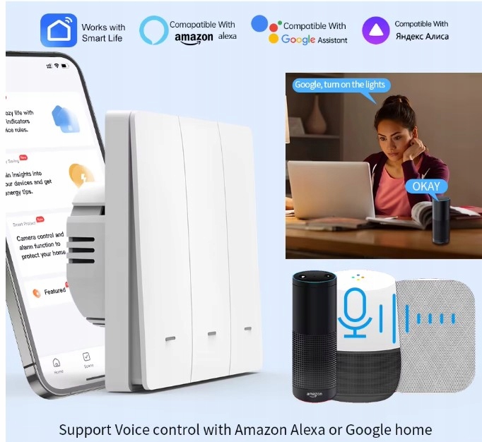 już nie musisz wstawć z kanapy czy fotela, aby zapalić lub zgasić światło. Благодаря интеграции Switch с помощью Google или Amazon Alexa Assistant, вы получите возможность более удобного управления с вашими устройствами. Просто простая команда , чтобы насладиться именно тем освещением, которое вам интересно!