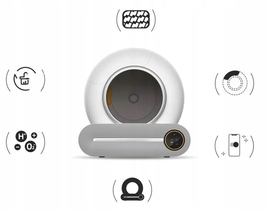 Кошачий лоток чрезвычайно прост в использовании – достаточно подключить его к источнику питания и высыпать в него наполнитель. Устройство оснащено кнопками, обеспечивающими удобный доступ к его наиболее важным функциям. Встроенный OLED-экран отображает полезную информацию, в том числе о его статусе. Благодаря этому вы можете быстро проверить, например, подключено ли устройство к Wi-Fi. , а также оповестит вас о выравнивании кошачьего туалета, быстрой очистке или дезодорации.