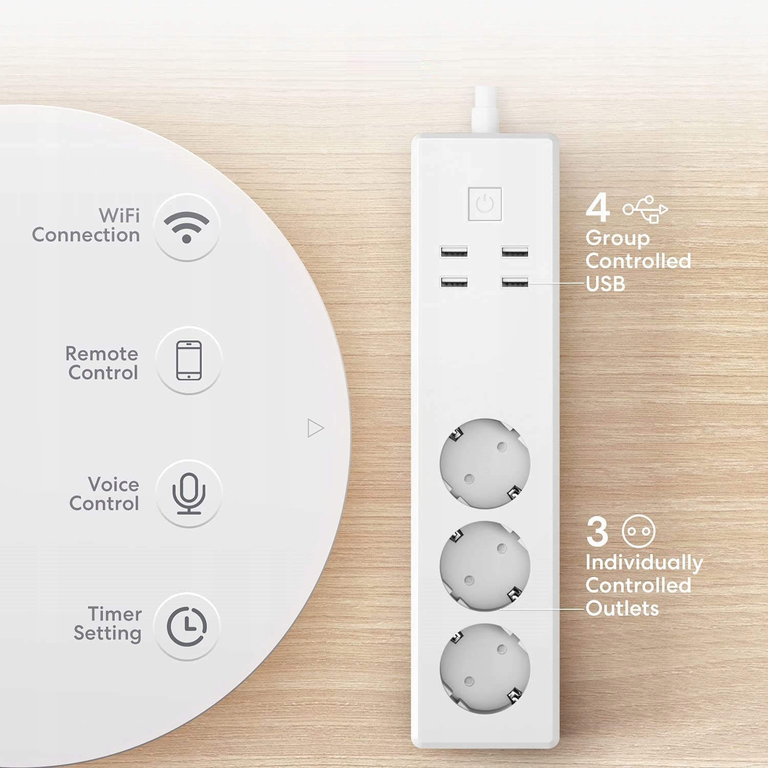 - Умный Мультипитание: 3 интеллектуальные розетки поддерживают независимое управление, вы можете индивидуально управлять устройствами, подключенными к 3 розеткам. 4 USB-порта поддерживают только унифицированное управление. Быстрая зарядка через USB удовлетворит ваши разнообразные потребности.