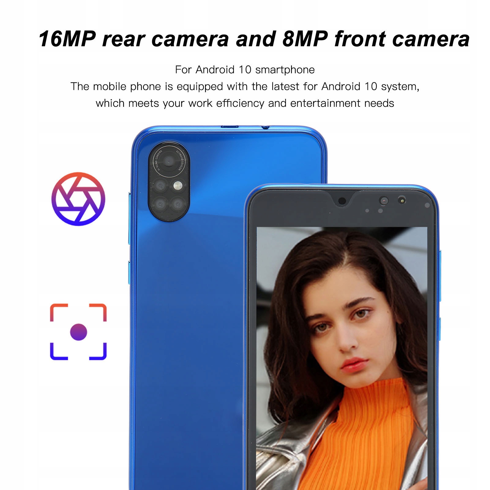 - Камера: передняя камера 8MP, Apertura f/2.0, фокусное расстояние, задняя камера 16MP, цвет, F/1.8 Aperture