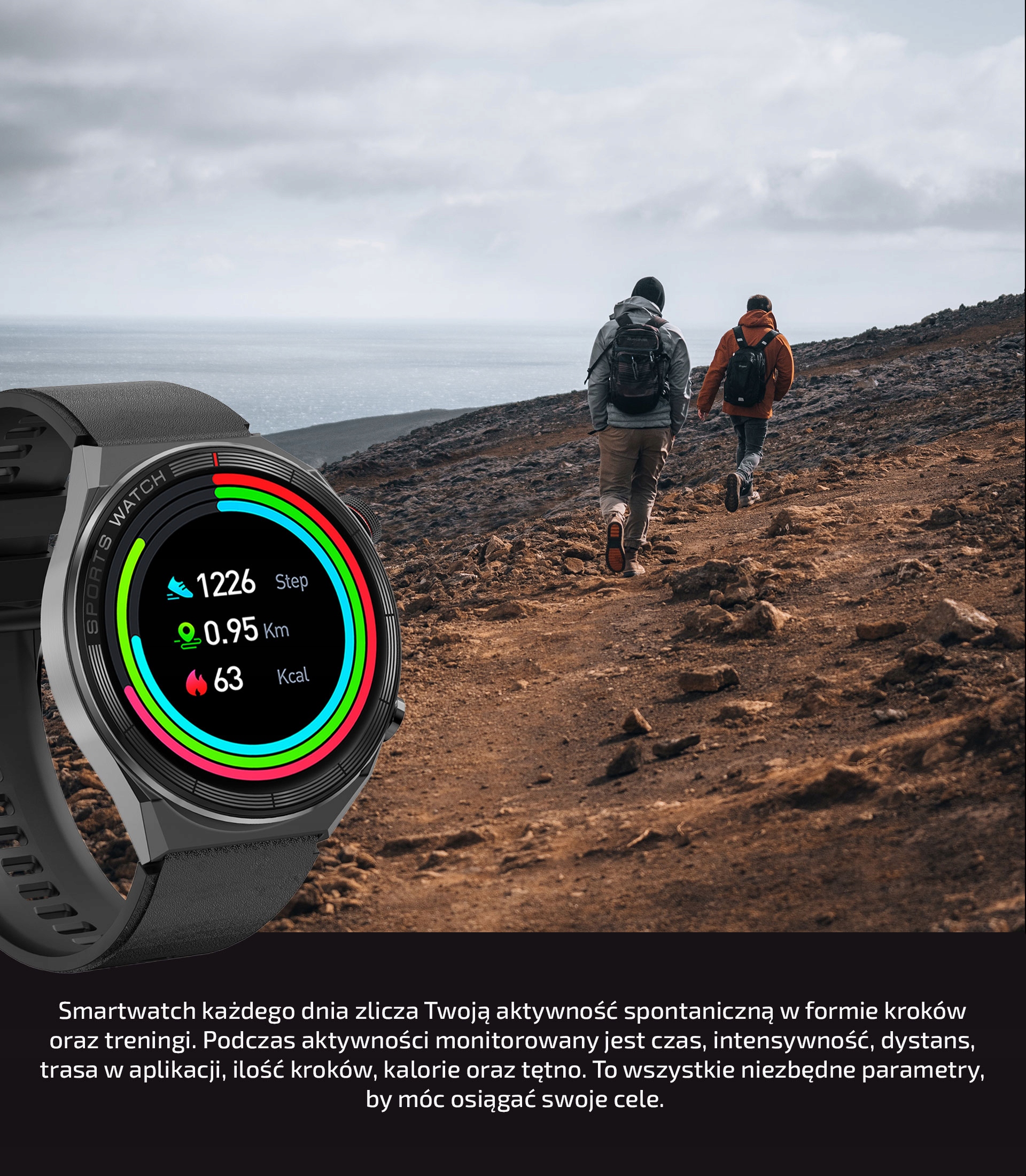 SmartWatch Maverick - это сочетание элегантной классики и технологии высочайшего качества. Каждый день это даст вам стиль и адаптироваться ко всем вашим требованиям благодаря расширенным функциям. Когда вы выбираете эту модель умных часов, у вас всегда будет прямой доступ к уведомлениям о приложениях, входящих звонках, SMS, погоде, многих измерениях здоровья и качеством сна. Вы будете следить за своими тренингами, проводить звонки по телефону, сохранять номера в памяти ваших умных часов и даже управлять часами голосовых команд. Что еще? Это полностью адаптируется к вашим потребностям! Многие функции, такие как измерения, внешний вид меню и щитов могут быть персонализированы и адаптированы к себе. Вам не нужно использовать стандартный шаблон, эти умные часы станут такими же уникальными, как и вы.
