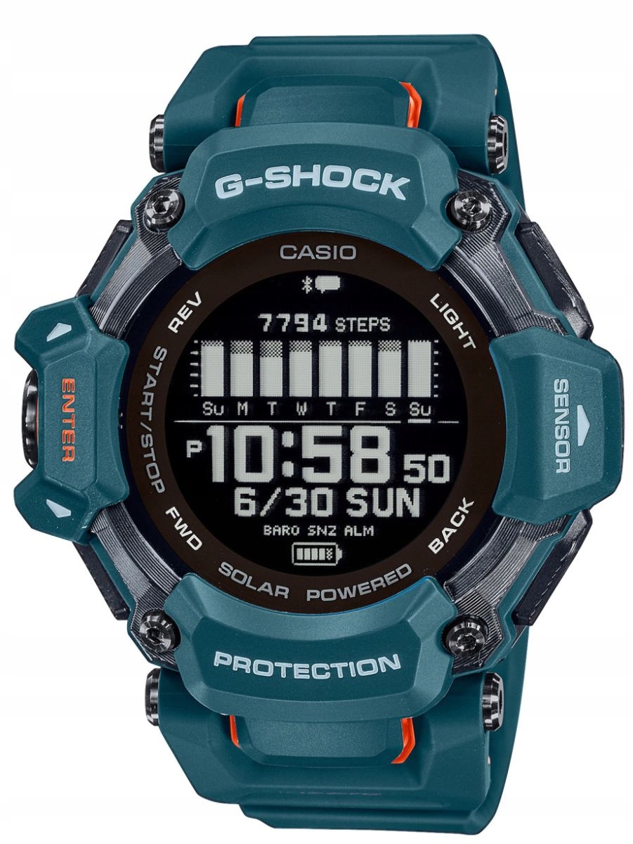 Часы Casio G-Shock GBD-H2000 с современными технологиями создают сочетание мечты для активных людей. Часы имеют 3 основные функции: ударопрочность G-Shock, измерение сердечного ритма, функция GPS. G-Shock GBD-H2000 — это сочетание исключительной долговечности и функций, полезных во время интенсивных физических или спортивных нагрузок. Оптический датчик, расположенный в нижней части часов, измеряет частоту сердечных сокращений на запястье и обеспечивает устойчивость к давлению воды до 200 атм. Прочная конструкция корпуса гарантирует, что часы выдержат удары во время использования, а также удары по корпусу. Особая конструкция корпуса предотвращает повреждение стекла и кнопок. Технология Bluetooth обеспечивает беспроводную связь с вашим мобильным телефоном, что еще больше улучшает функциональность таймера и дополняет его дополнительными возможностями измерения и записи.