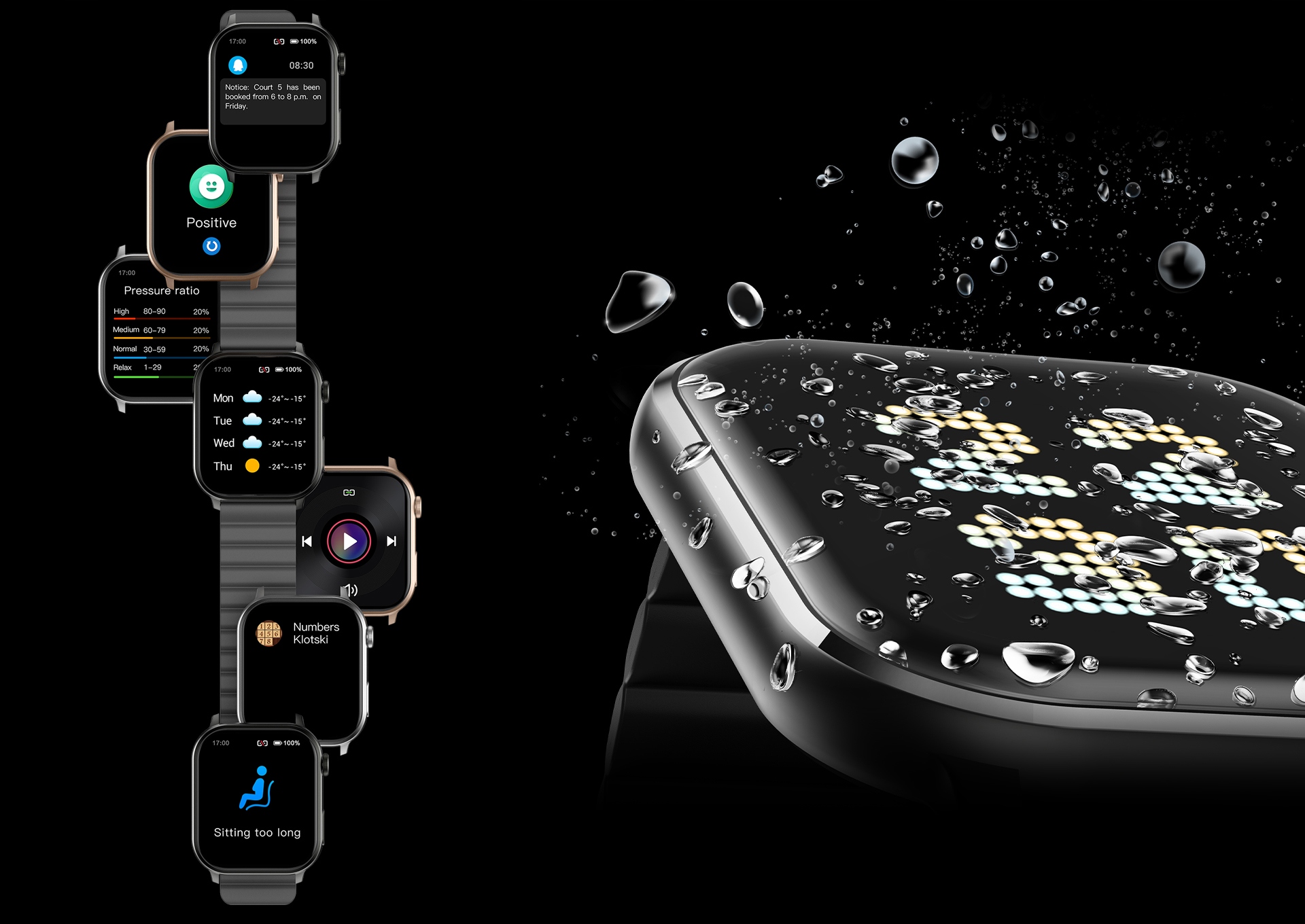 Вам не нужно беспокоиться о влаге и брызгах благодаря водонепроницаемому дизайну. Не подходит для дайвинга или активности в воде высокого давления. Вы можете использовать его в душе. Тем не менее, избегайте саун, купания в горячей воде и воде океана, потому что влага и соленая вода могут повредить устройство.