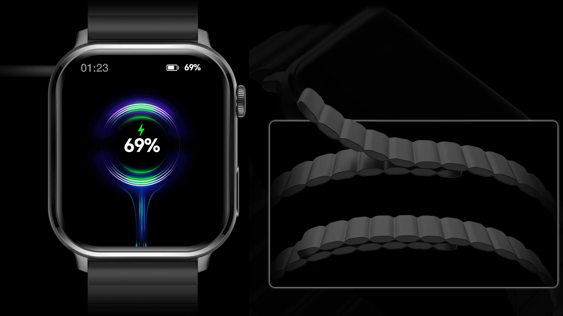 Уникальный магнитный ремешок позволяет вам надеть часы через несколько секунд. Это также может быть легко удалено. Дополнительная спортивная силиконовая полоса -дружеская, дышащая, водонепроницаемая и удобная для ношения.