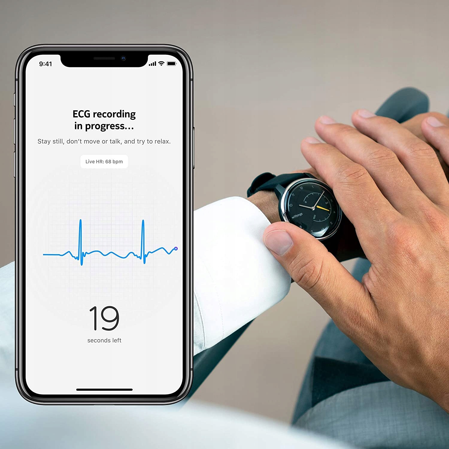 Где бы вы ни находились, в любое время время — с Withings Move ECG Вы всегда можете сделать ЭКГ. Чувствовали ли вы учащенное сердцебиение или нерегулярный сердечный ритм? Просто нажмите на заводную головку, а затем обхватите корпус часов двумя пальцами. Через 30 секунд вы получите результаты ЭКГ-теста, которые представляют собой медицинскую документацию и могут быть использованы во время визита к врачу.