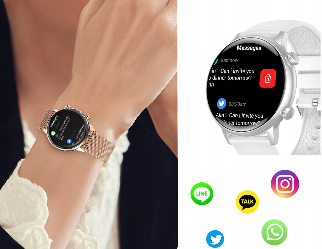 SMARTWATCH ZEGAREK SPORTOWY SMARTBAND PULS SPORT PRO FIT AMOLED DAMSKI SMS