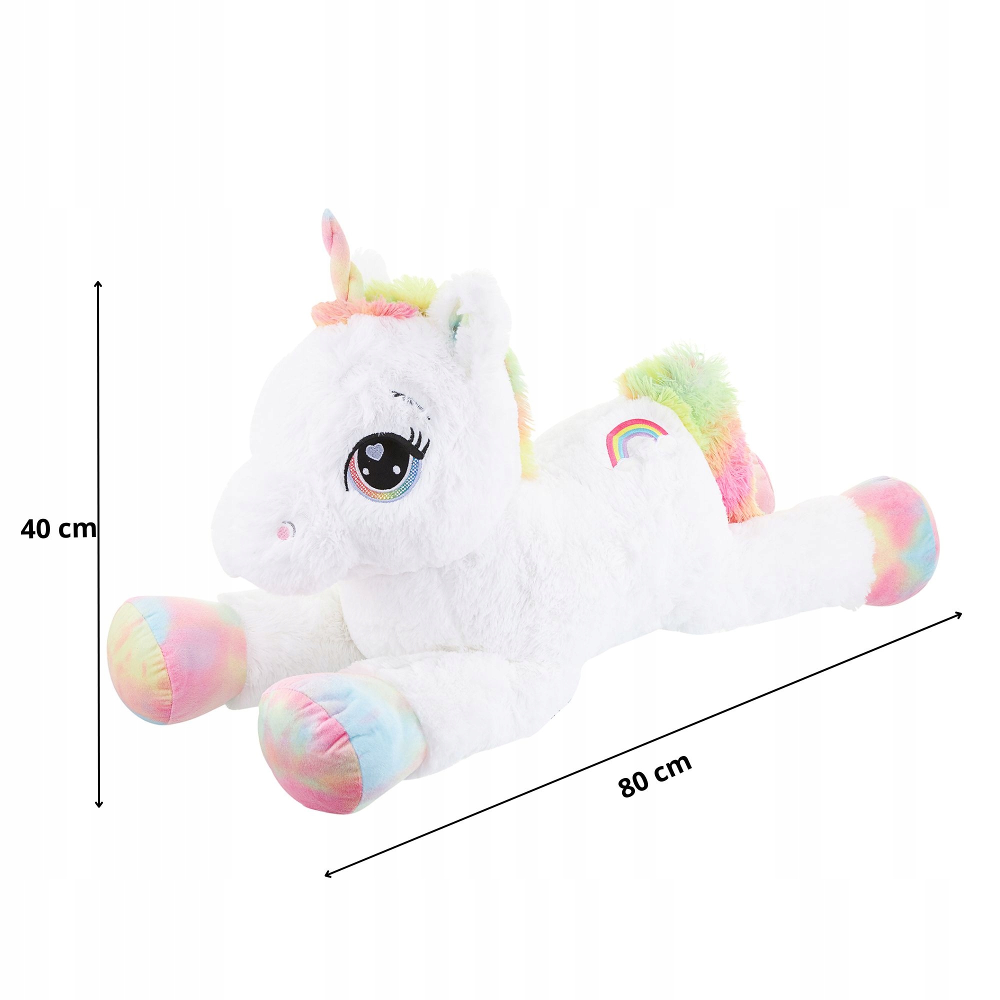 Плюшевый единорог — большая, приятная на ощупь игрушка, которая наверняка понравится многим девочкам... и поменьше, и побольше.