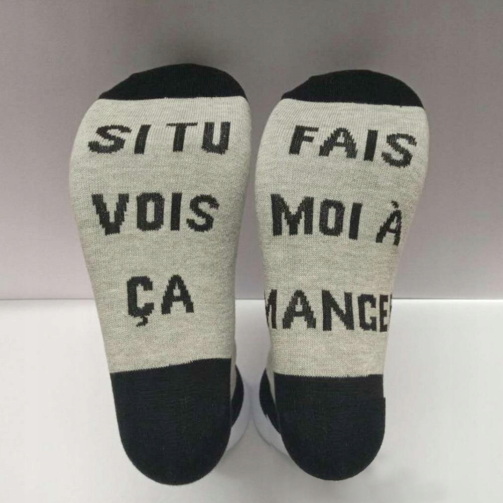 1. Носки с надписью на подошве: «SI TU VOIS CA» и «APPORTE MOI UNE BIERE» отображаются на французском языке. Идеальный подарок на Рождество на день рождения.