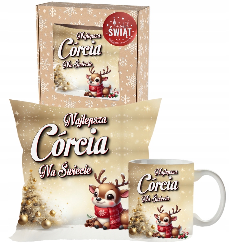 PREZENT DLA CÓRKI NA ŚWIĘTA PODUSZKA KUBEK ŚWIĄTECZNY ZESTAW