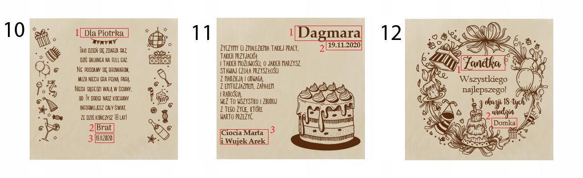 Перед отправкой информации нам Проверьте контент ровно с точки зрения правильности. Опечатки, отсутствие знаков препинания, слишком большие интервалы между словами - все это отрицательно влияет на внешний вид гравюры (мы не вмешиваемся в отправленный текст).