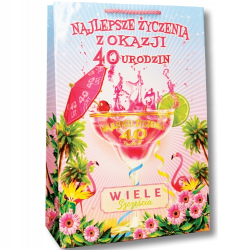 Элегантный подарочный пакет с забавной надписью по случаю 40 -летия. Сумочка, сделанная из толстой лакированной бумаги.