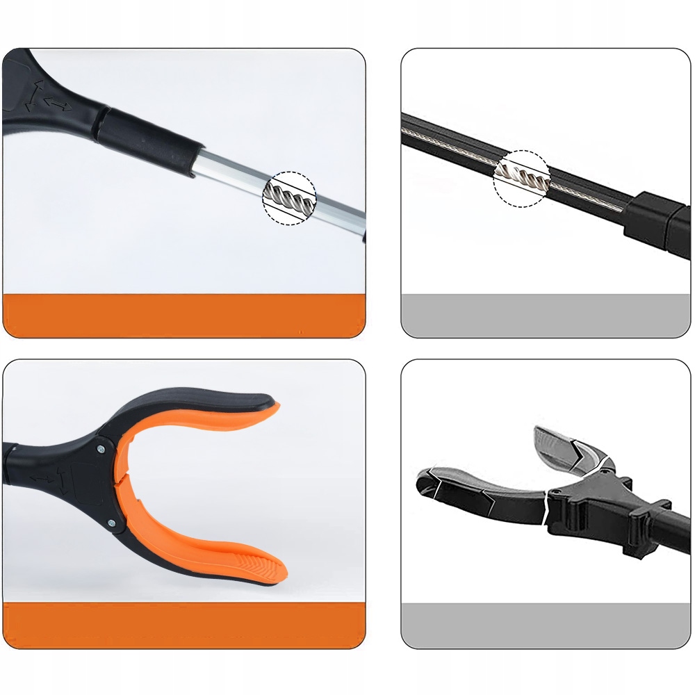 Лучший инструмент для достижения удаленных объектов! Щипцы для мусора изготовлены из прочного стального троса и алюминиевой трубки и легко захватывают легкие предметы из ограниченного пространства. Идеально подходит для подъема одежды, обуви, пультов дистанционного управления и многого другого. Кроме того, захват для пожилых людей – отличный подарок после операции или аксессуар для инвалидов. Больше не нужно беспокоиться о достижении чего-то — сделайте свои клещи для вывоза мусора профессиональными
