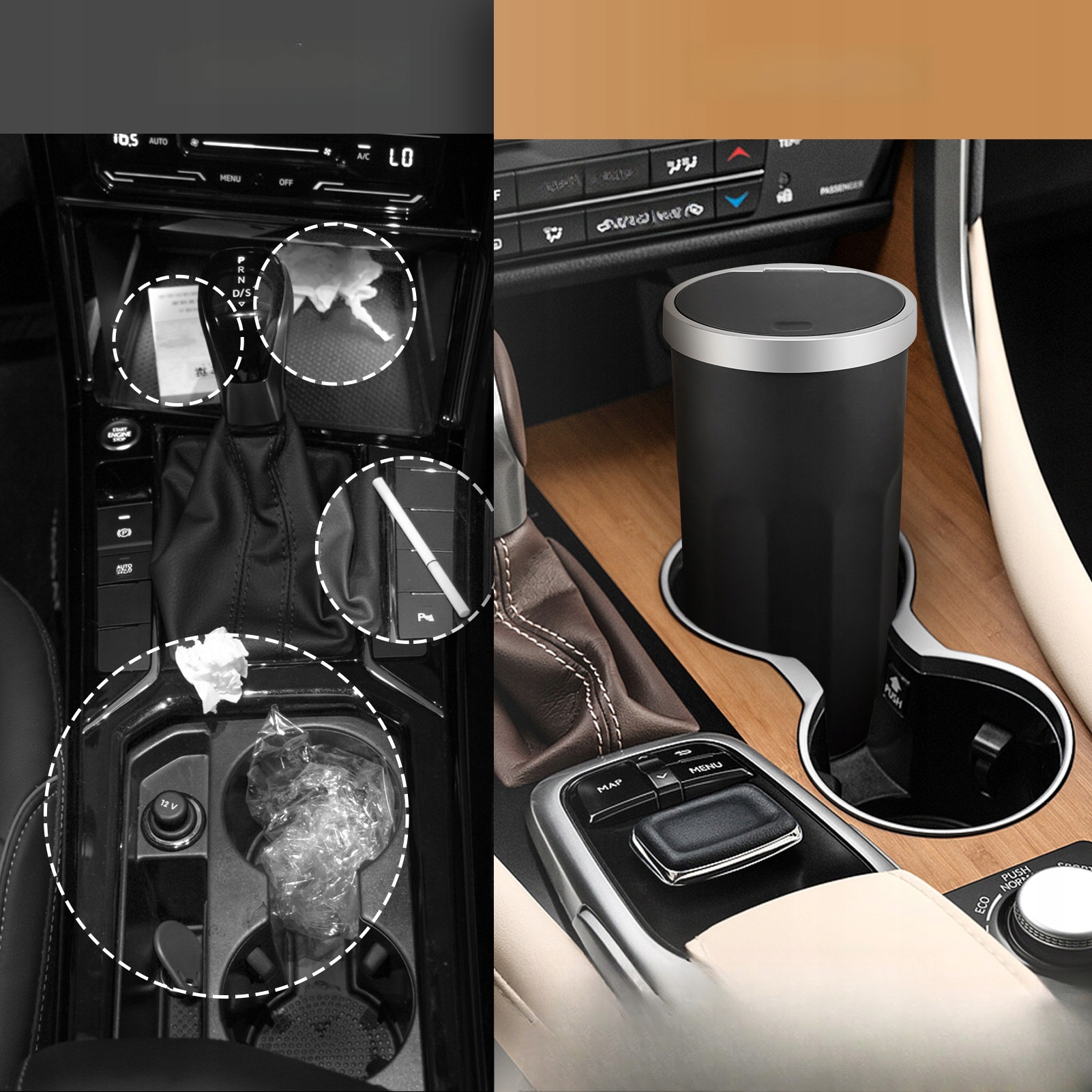 ✅ Kosz для мусора автомобиля подходит для узких помещений в автомобиле, таких как чашки, организаторы сетки автомобилей.
