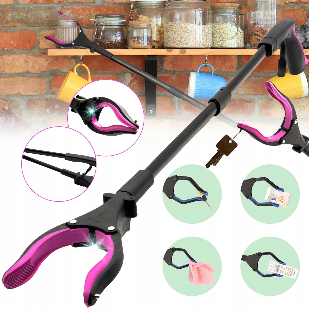 - СВЕТОДИОДНАЯ ПОДСВЕТКА:БЕЗОПАСНЫЙ СПОСОБ ПОЛУЧИТЬ ТО, ЧТО ВАМ НУЖНО. Новая инновационная светодиодная подсветка помогает безопасно доставать и брать предметы в темных местах, где это возможно из-за темноты. может быть трудно схватить и дотянуться. Больше никаких шатких ступенек или лестниц, которые могут привести к падению: наш грейфер позволяет вам получить все, что вы хотите, без риска несчастных случаев. В медицинских учреждениях и при уходе за пожилыми людьми крайне важно свести к минимуму физическую нагрузку. Инструмент для захвата медицинского оборудования для старых предметов домашнего обихода.