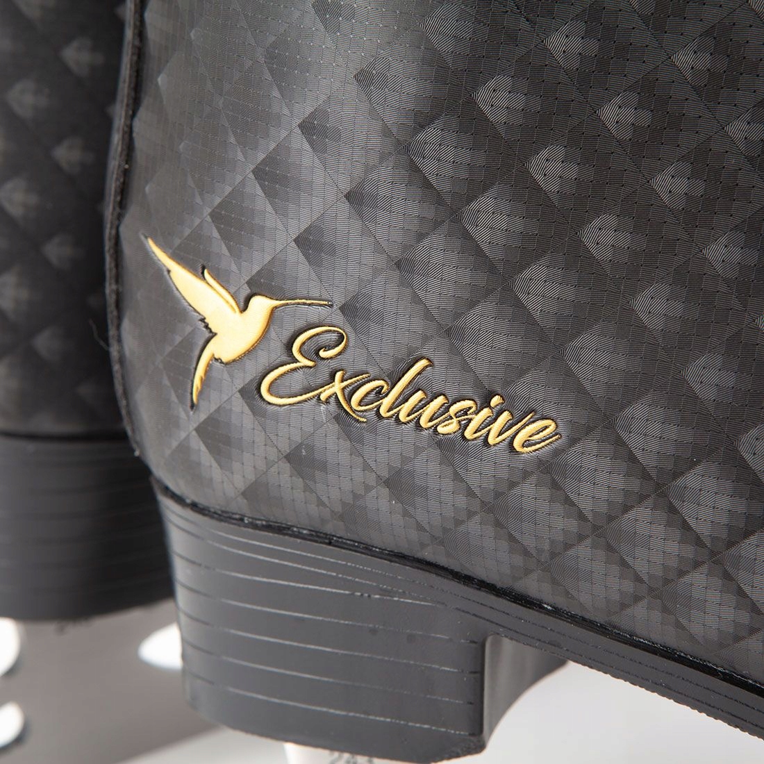 Коньки женские, на шнуровке, модель: Эксклюзив. Классический, черный цвет, украшенный нежным золотым принтом. Изготовлен из синтетической кожи. Правильно профилированная обувь укрепляет ногу, обеспечивая при этом достаточную гибкость. Полозья изготовлены из закаленной нержавеющей стали.Благодаря закалке полозья становятся более твердыми и устойчивыми к частой заточке и использованию. Таблица размеров: Размер/длина стельки. 35 – 23 см. 36 – 23,5 см. 37 - 24см. 38 - 24,5см. 39 - 25см. 40 - 25,5см. 41 - 26см. 42 – 26,5 см.