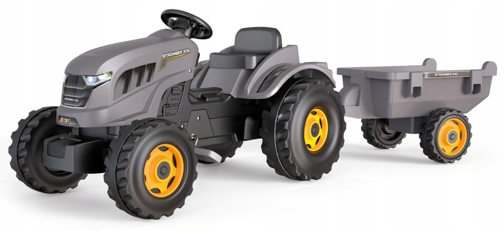 Трактор Stronger XXL с прицепом от Smoby — это большой, мощный и современный педальный автомобиль. Он предназначен для детей старше трех лет.