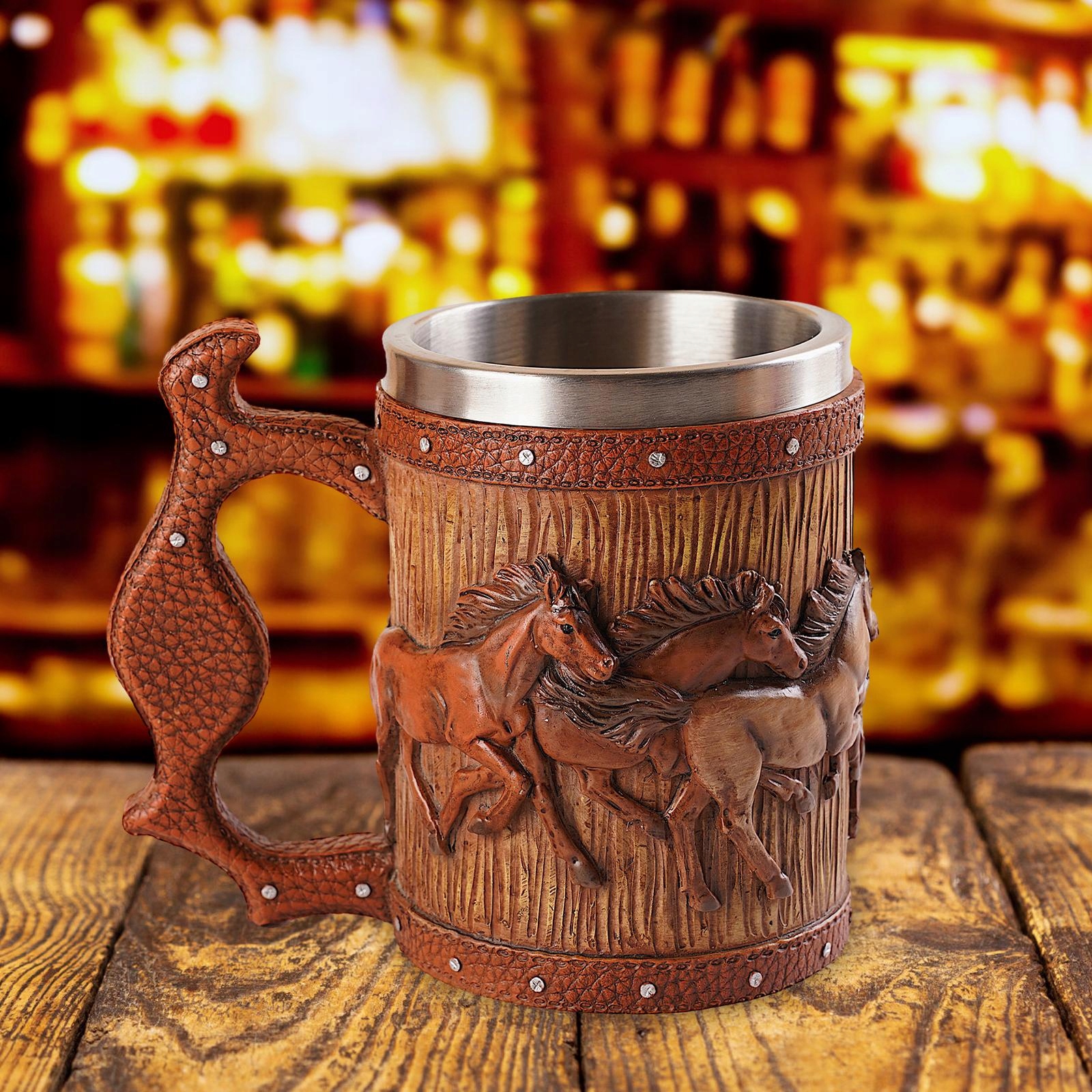 [Большая вместимость]: 3D-пивной резервуар для бегущих лошадей объемом около 6000 мл, подходит для пива, молока, горячих и холодных напитков, воды и кофе.