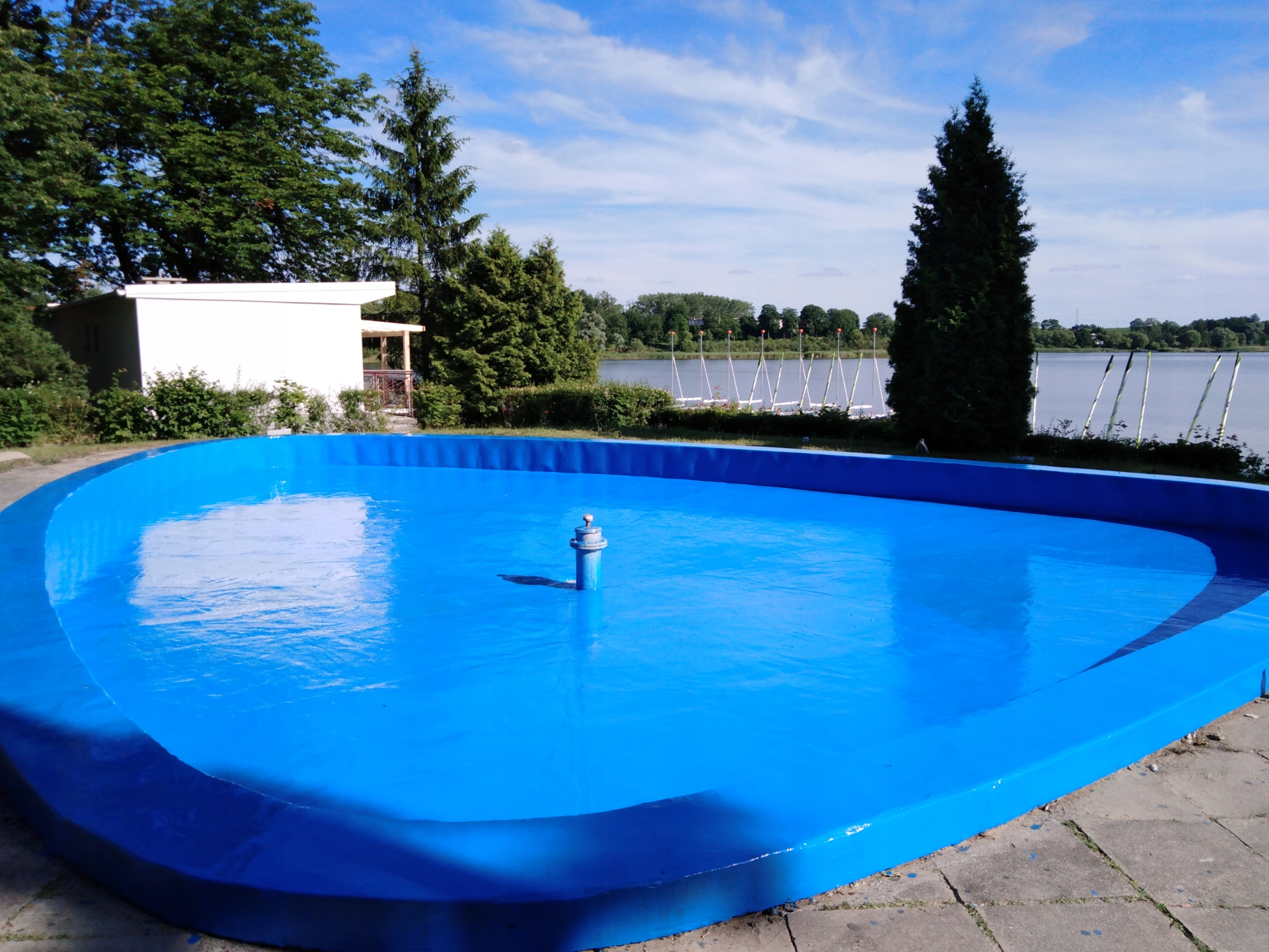 1 - ПОДГОТОВКА БАССЕЙНА (ПОВЕРХНОСТЬ К ПОКРАСКЕ) поверхность должна быть сухая, влажность 5%, тщательно очищенная от пыли, удален рыхлый слой бетона (старое лакокрасочное покрытие отслоилось и стало матовым, просушка, удаление пыли.
