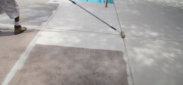 1-ПОДГОТОВКА (ПОВЕРХНОСТЬ К ПОКРАСКЕ) поверхность должна быть сухой, тщательно очищенной от пыли, удален рыхлый слой бетона. .(старое лакокрасочное покрытие отслоилось-матировалось керхером при сушке, удаление пыли.