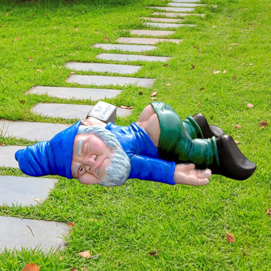 Статуя Gnoma лежит на газоне, чтобы привлечь внимание всех
