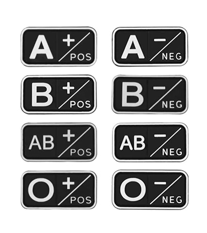 ЧЕРНАЯ ПОЛОСКА С ГРУППОЙ КРОВИ С ЭМБЛЕМОЙ НА ЛИПИКЕ