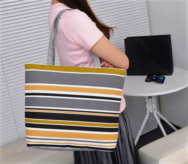 Функциональная и практичная сумка с яркими полосками. Идеально подходит для пляжа и шоппинга. Оно может дополнить городской летний стиль.