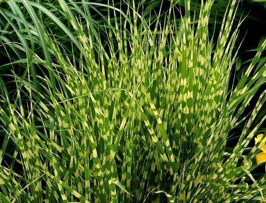 китайский Missanthus 'Strystus' был награжден Британской наградой за заслуги в саду (AGM), присужденной Королевским садом обществом (RHS). Его зеленые, равные листья украшены эффективными, поперечными, сливочными желтыми полосами.