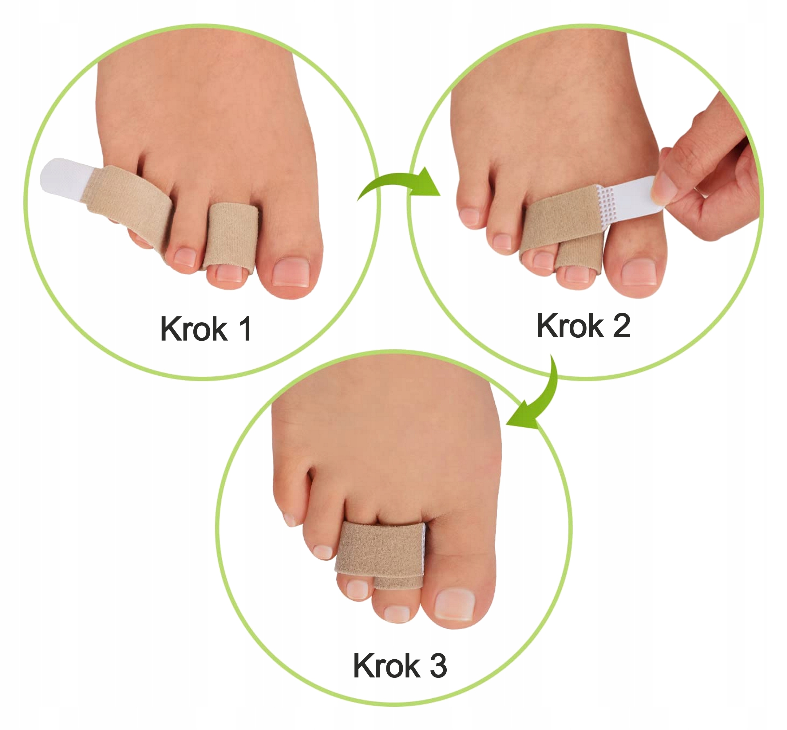 - 🦶 наденьте ремешок на деформированные пальцы и застегните липучку;