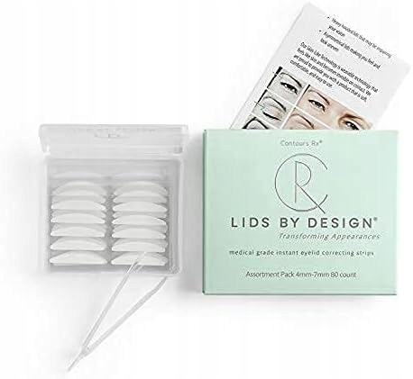 - Легко наносится, сдержанный дизайн - невидимая лента для глаз Lids by Design варьируется от тонкого размера 3 мм до более впечатляющий размер 8 мм во внешнем виде и четкости век. В комплект Eyelid Corrective Correction Strips входят 80 полосок, месячный запас избавления от тяжелого капюшона, лишней кожи и усталых глаз. В каждый комплект входит пинцет для быстрого и плавного нанесения.