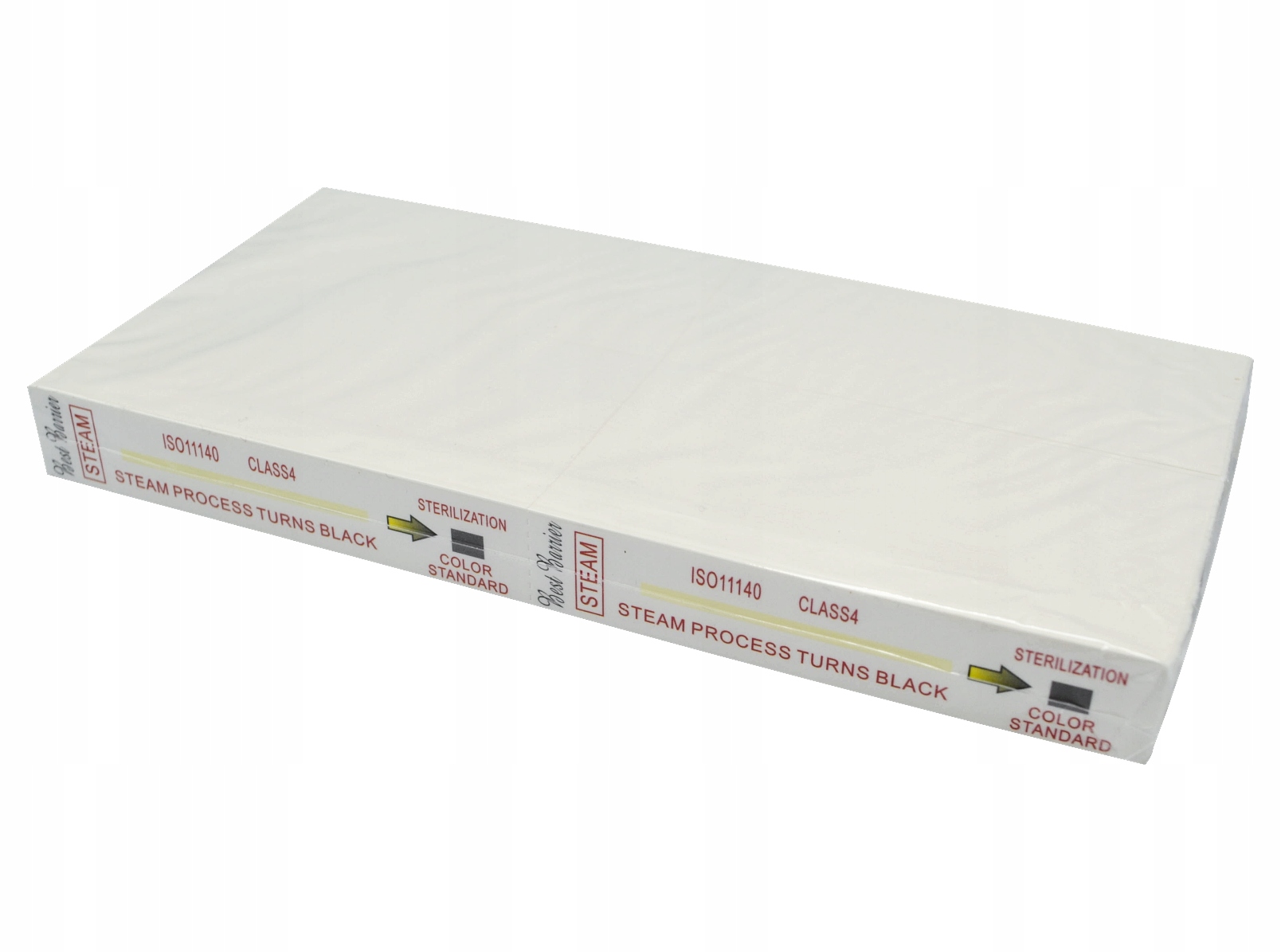 Химические тест-полоски для контроля стерилизации. Предназначен для эффективного контроля критических параметров паровой стерилизации и проникновения ее в процесс. Во время стерилизации паром индикатор на конце полоски меняет цвет с желтого на черный. Подходит для использования в паровых стерилизаторах любого типа. Он соответствует ISO 11140-1 как тест класса 4. Каждая тест-полоска перфорирована, что позволяет разделить ее на две равные части.< /п>