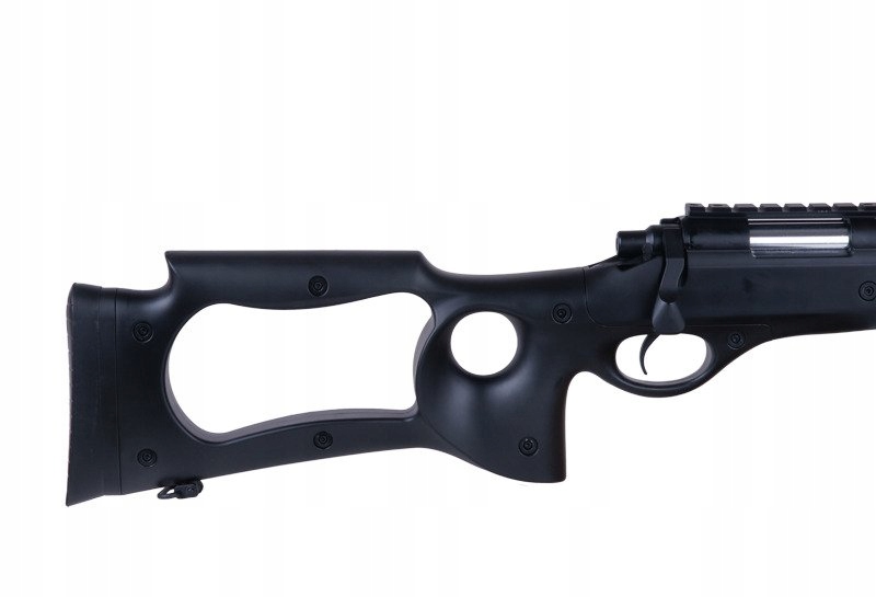 Цевье изготовлено из прочного пластика. Удобная пистолетная рукоятка с вырезом для большого пальца и приклад с подщечной подушечкой правильной формы позволяют реплике идеально лежать в руках и делают стрельбу очень комфортной. Такая конструкция также позволяет дольше оставаться неподвижным, в удобном положении, что крайне важно для снайпера.