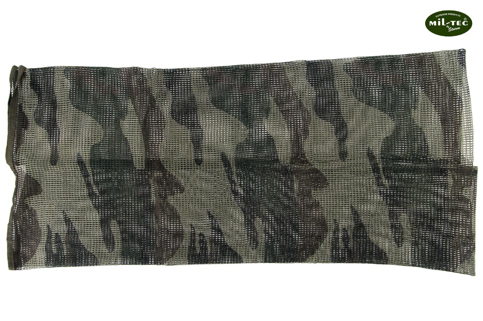 <ул>Снайперский шарф, маскировочная сеть. Продукт немецкой компании Mil-Tec. Военная спецификация гарантирует надежность. Сетка обеспечивает отличную маскировку головы, тела и экипировки, размывая силуэт. Он легкий, простой в использовании и является одним из наиболее эффективных средств индивидуальной маскировки. Изготовлен из тканой сетки с крупными ячейками. Прочный материал гарантирует износостойкость. Он воздушный, быстро сохнет, не отражает свет, не шуршит, а в свернутом виде умещается в кармане. Возможность подвешивания сетки, например, над наблюдательным пунктом или маскировкой палатки. Закрывает всю фигуру. Прекрасно работает как москитная сетка. Края прошиты и защищены от распускания.