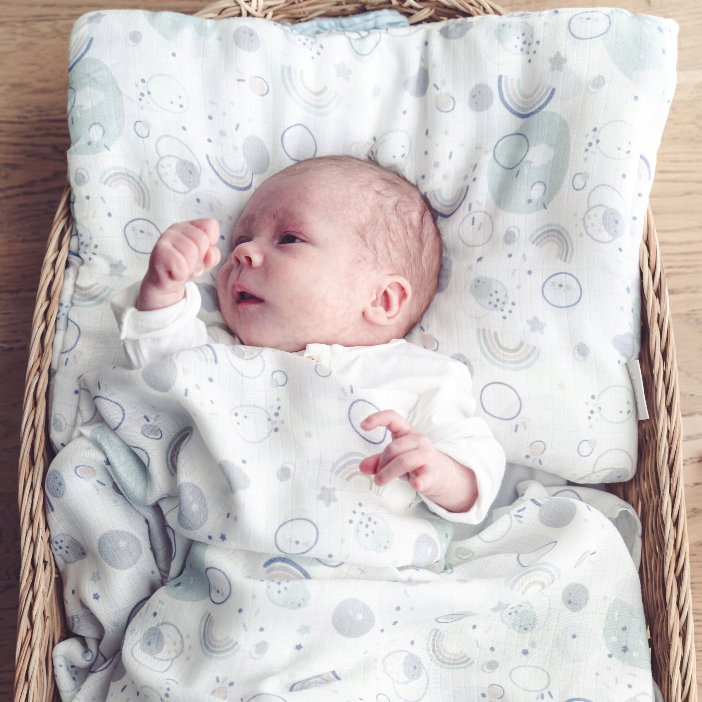 Нежная, воздушная муслиновая пеленка имеет универсальное применение: она укроет новорожденного с первых дней его жизни, с успехом может служить нежным одеялом, простыней или шарфом для тесного укутывания малыша и для кормящей мамы. Он хорошо работает как защита от солнечного света. Ткань, из которой оно изготовлено, обладает антибактериальными, противоаллергическими и терморегулирующими свойствами. Прекрасно впитывает воду – чехол можно использовать как полотенце. Чрезвычайно прочный и приятный на ощупь. Изготовлена из бамбуковой вискозы с использованием красителей, сертифицированных Oeko-Tex 100 класса I. Благодаря приглушенной универсальной цветовой палитре пеленка идеально подходит как мальчикам, так и девочкам.