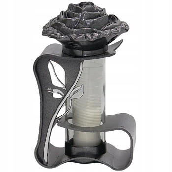 Современная стеклянная свеча элегантного черно-серебряного цвета с нежным мотивом розы. Идеально подходит для украшения кладбища, сочетая элегантность с современным стилем.