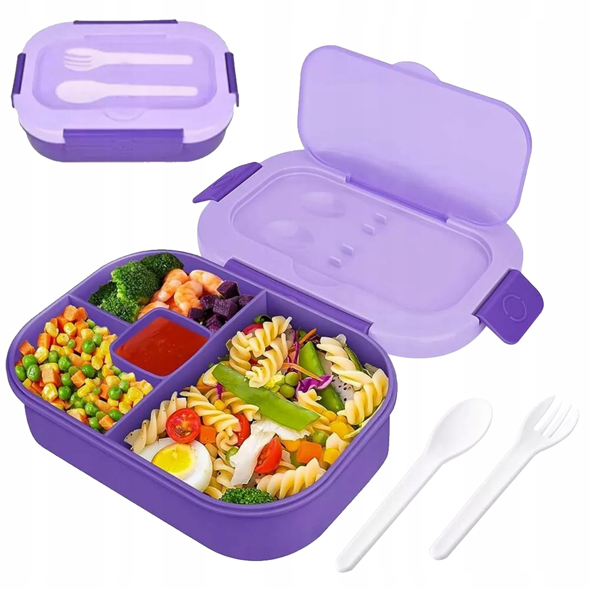 Школьная коробка для второго завтрака с 4 отсеками поддерживает свежие продукты без ухудшения вкуса, помогает в планировании еды и развитии здоровых привычек питания. Коробка для взрослых для взрослых и детей содержит пластиковые ложки и вилки, идеально подходящие для работы, школ и пикники.