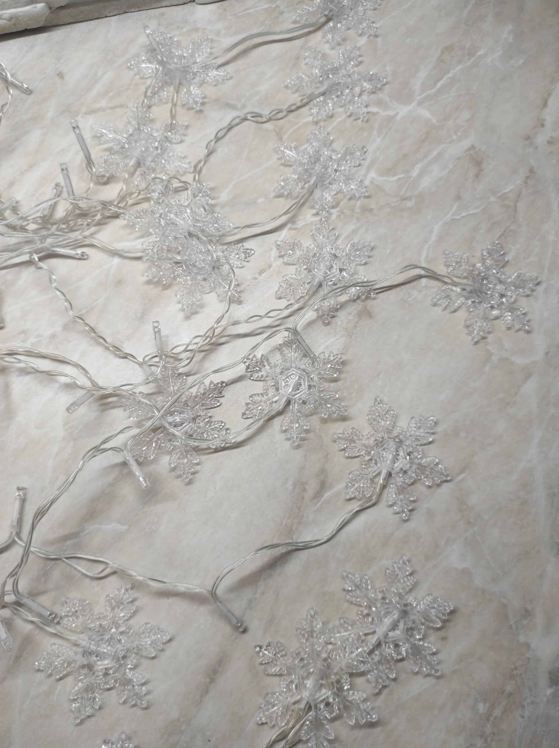 - Светодиодный световой занавес в форме снежинок (1,8 х 1 м) с 94 светодиодами и 16 снежными огнями. Расстояние между бусинами светодиодного света и каждой световой линией составляет 12 см, а на каждой светлой цепи есть свет снефляции. Теплый и мягкий свет создает теплую и романтическую атмосферу и добавляет немного теплой к зимним вечерам!